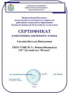 ПОЗДРАВЛЯЕМ участников заочного этапа Всероссийского Фестиваля педагогического мастерства и творчества работников дошкольного образования»Единство ценностей. В детский сад за смыслом»: Крушинскую О.Е., Петрякову И.В., Савран Е.А., Саутину Н.Н., Степанову И.С.